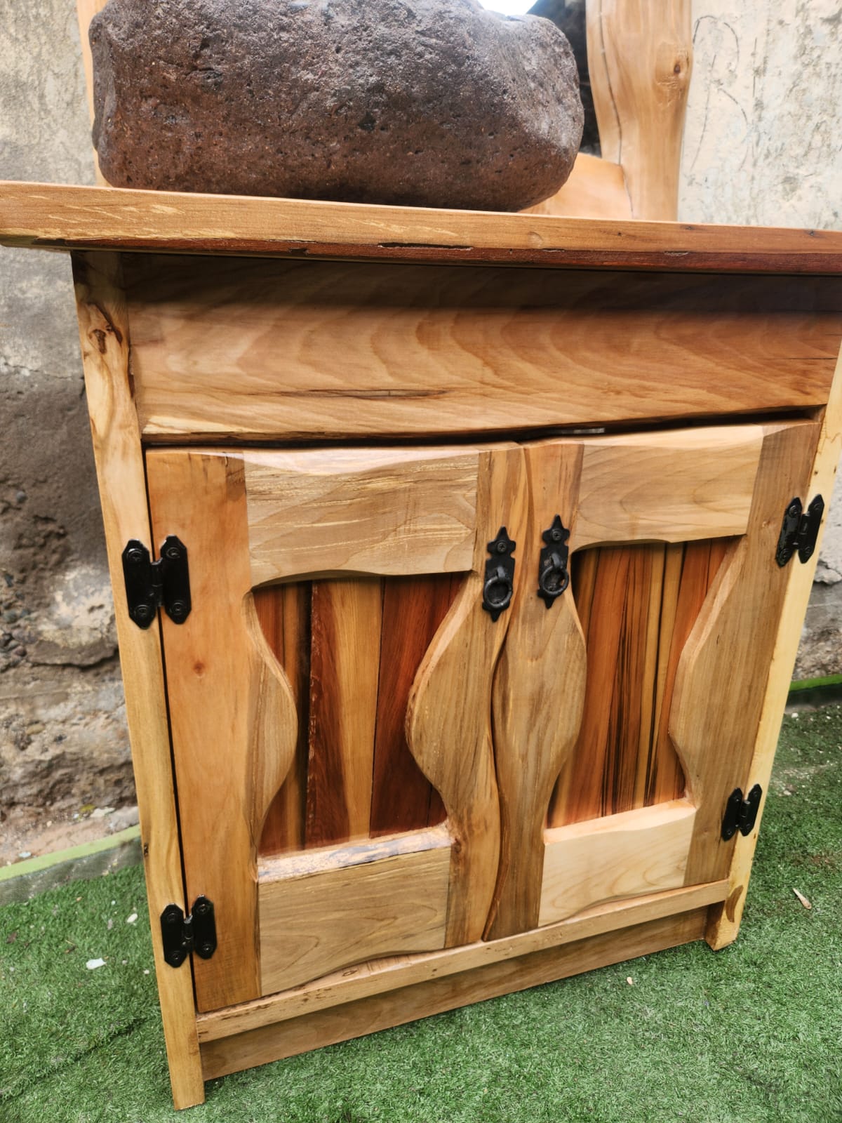 Sé el primero en valorar “Vanitorio (2) rústico de Roble con detalles en Alerce + lavamanos de piedra”