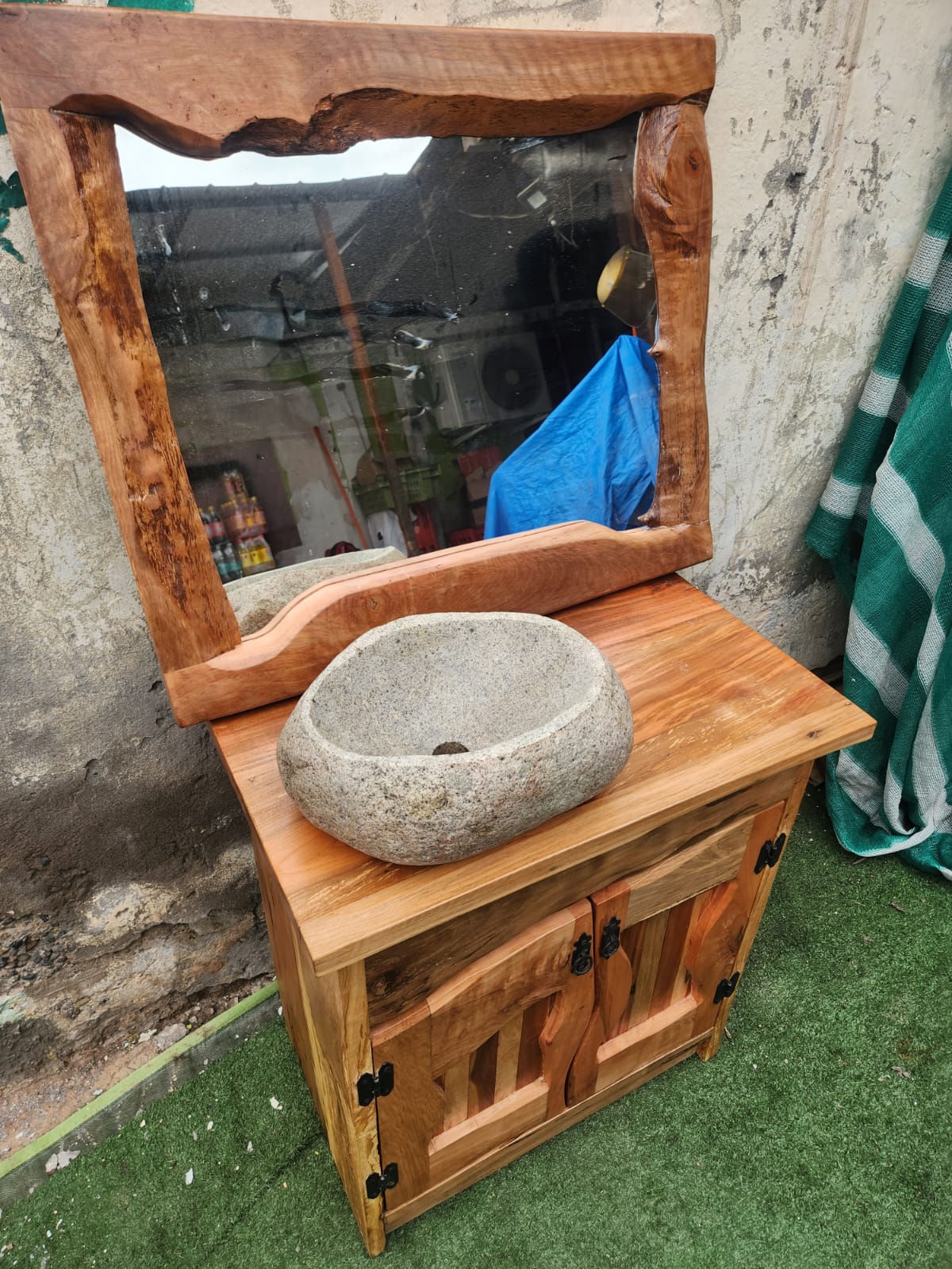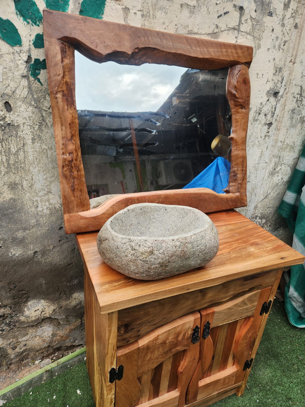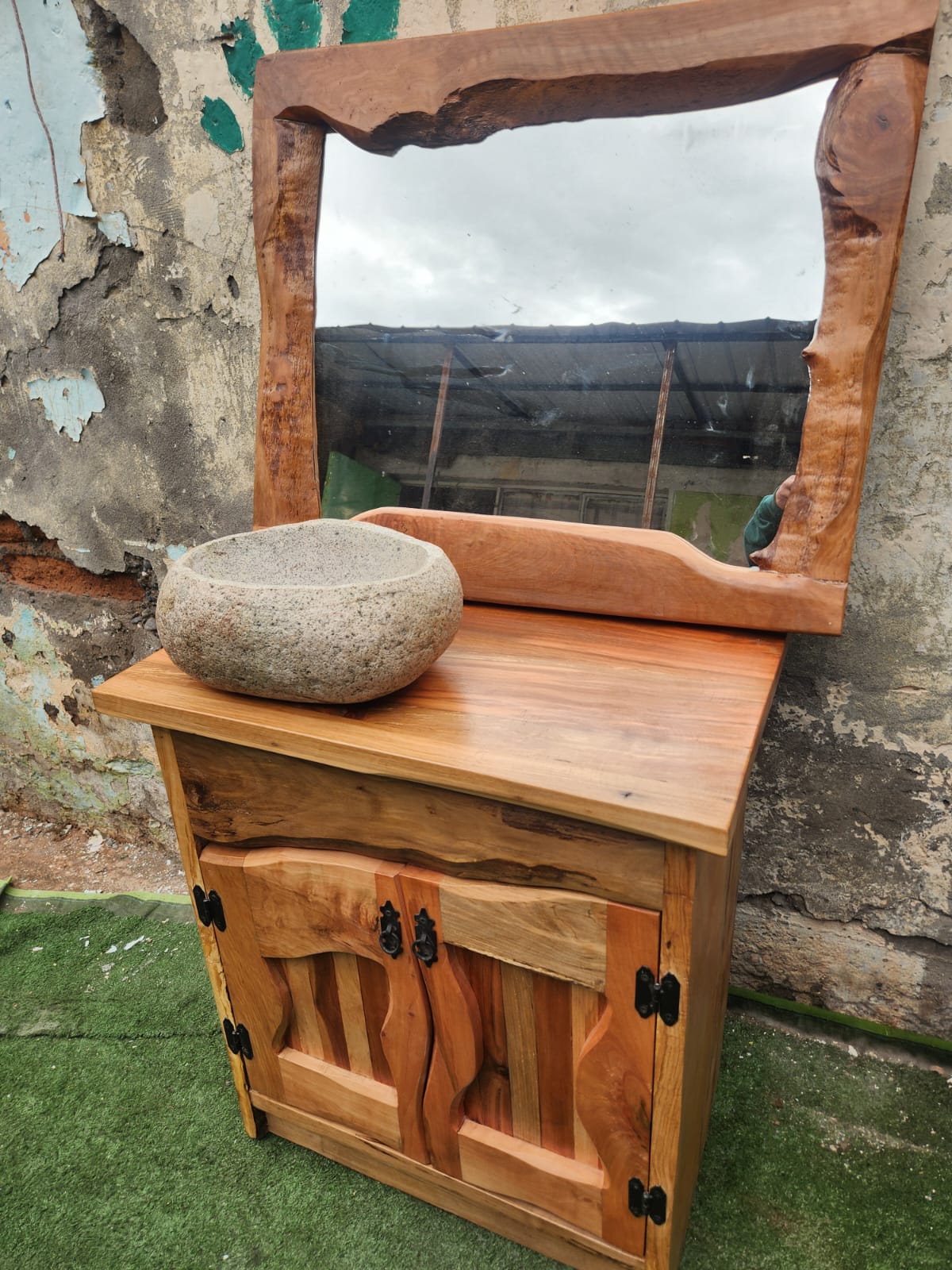Hecho a mano. Pieza única con espejo integrado y veta natural.